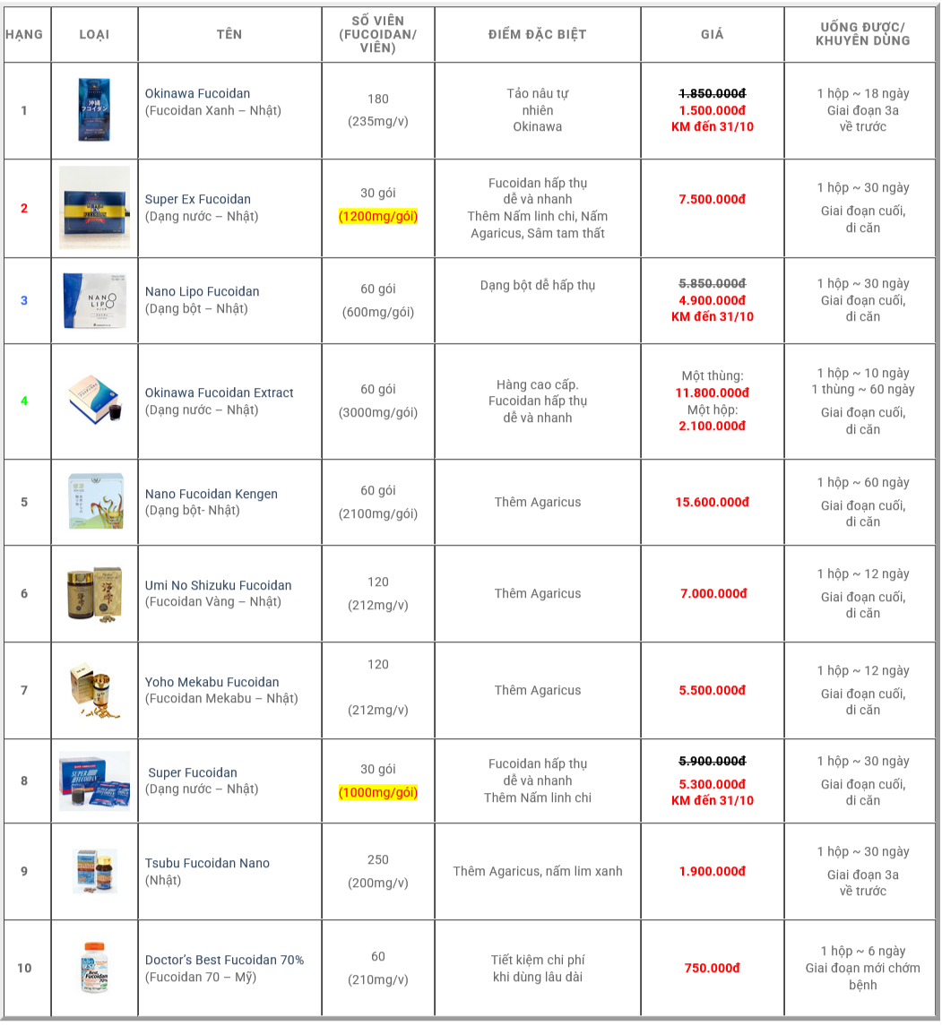 Bạn tham khảo loại số 1 trong bảng xếp hạng nhé: Okinawa Fucoidan 180 viên. Bạn vui lòng để lại số điện thoại, nhân viên bên mình sẽ gọi lại tư vấn ạ.
