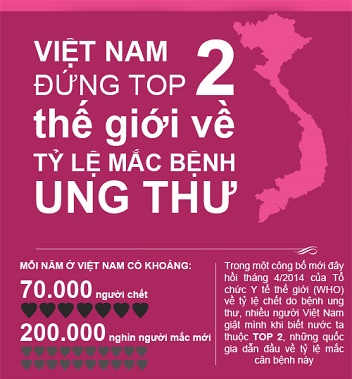 Tổ chức Y tế Thế giới (WHO) cho biết nước ta đứng top 2 thế giới về tỷ lệ người chết vì mắc ung thư. Cụ thể có khoảng 70.000 người chết vì bệnh ung thư và hơn 200.000 ca mới mỗi năm. Một con số đã khiến cho nhiều người Việt phải giật mình.